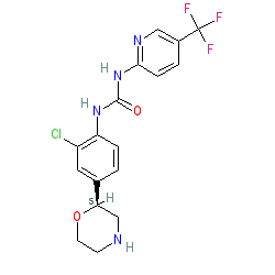 | SMILES | O=C(Nc1ccc(C(F)(F)F)cn1)Nc1ccc([C@H]2CNCCO2)cc1Cl |