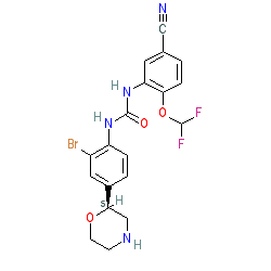 | SMILES | N#Cc1ccc(OC(F)F)c(NC(=O)Nc2ccc([C@H]3CNCCO3)cc2Br)c1 |