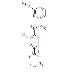 | SMILES | N#Cc1cccc(C(=O)Nc2ccc([C@H]3CNCCO3)cc2Cl)n1 |