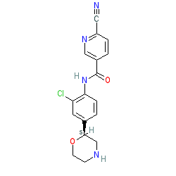 | SMILES | N#Cc1ccc(C(=O)Nc2ccc([C@H]3CNCCO3)cc2Cl)cn1 |
