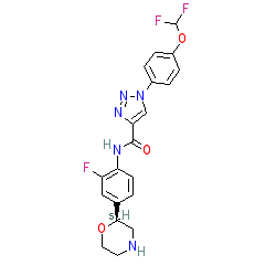 | SMILES | O=C(Nc1ccc([C@H]2CNCCO2)cc1F)c1cn(-c2ccc(OC(F)F)cc2)nn1 |