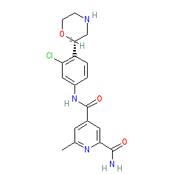 | SMILES | Cc1cc(C(=O)Nc2ccc([C@H]3CNCCO3)c(Cl)c2)cc(C(N)=O)n1 |