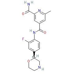 | SMILES | Cc1cc(C(=O)Nc2ccc([C@H]3CNCCO3)cc2F)cc(C(N)=O)n1 |