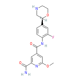 | SMILES | COc1cc(C(=O)Nc2ccc([C@H]3CNCCO3)cc2F)cc(C(N)=O)n1 |