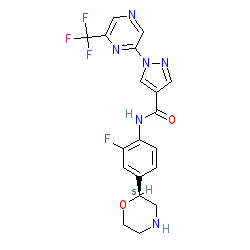 | SMILES | O=C(Nc1ccc([C@H]2CNCCO2)cc1F)c1cnn(-c2cncc(C(F)(F)F)n2)c1 |