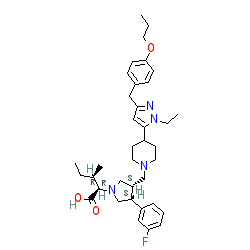 | SMILES | CCCOc1ccc(Cc2cc(C3CCN(C[C@H]4CN([C@@H](C(=O)O)[C@H](C)CC)C[C@@H]4c4cccc(F)c4)CC3)n(CC)n2)cc1 |