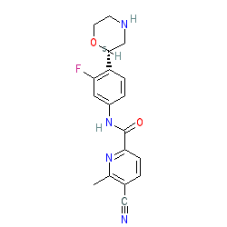 | SMILES | Cc1nc(C(=O)Nc2ccc([C@H]3CNCCO3)c(F)c2)ccc1C#N |