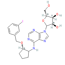 | SMILES | OC[C@H]1OC(n2cnc3c(NC4CCC[C@@H]4OCc4cccc(I)c4)ncnc32)[C@H](O)[C@@H]1O |