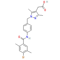 | SMILES | Cc1cc(C(=O)Nc2ccc(Cn3nc(C)c(CC(=O)O)c3C)cc2)c(C)cc1Br |