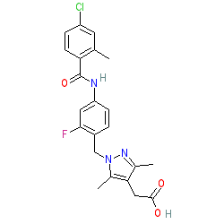 | SMILES | Cc1cc(Cl)ccc1C(=O)Nc1ccc(Cn2nc(C)c(CC(=O)O)c2C)c(F)c1 |