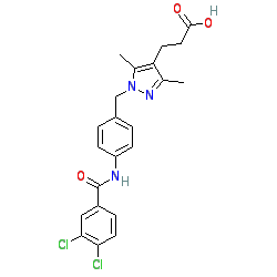 | SMILES | Cc1nn(Cc2ccc(NC(=O)c3ccc(Cl)c(Cl)c3)cc2)c(C)c1CCC(=O)O |