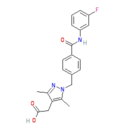 | SMILES | Cc1nn(Cc2ccc(C(=O)Nc3cccc(F)c3)cc2)c(C)c1CC(=O)O |