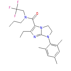 | SMILES | CCCN(CC(F)(F)F)C(=O)c1c(CC)nc2n1CCN2c1c(C)cc(C)cc1C |