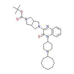 | SMILES | CC(C)(C)OC(=O)N1CC2CN(c3nc4ccccc4n(C4CCN(C5CCCCCCC5)CC4)c3=O)CC2C1 |