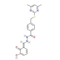 | SMILES | Cc1cc(C)nc(SCc2ccc(C(=O)NN/C=C3\C=CC=C(O)C3=O)cc2)n1 |