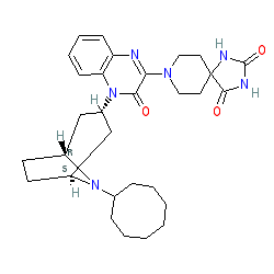| SMILES | O=C1NC(=O)C2(CCN(c3nc4ccccc4n([C@@H]4C[C@@H]5CC[C@H](C4)N5C4CCCCCCC4)c3=O)CC2)N1 |