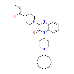 | SMILES | COC(=O)C1CCN(c2nc3ccccc3n(C3CCN(C4CCCCCCC4)CC3)c2=O)CC1 |