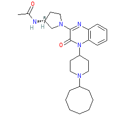 | SMILES | CC(=O)N[C@@H]1CCN(c2nc3ccccc3n(C3CCN(C4CCCCCCC4)CC3)c2=O)C1 |
