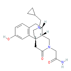 | SMILES | NC(=O)CN1C[C@H]2[C@H]3Cc4ccc(O)cc4[C@@]2(CCN3CC2CC2)CC1=O |