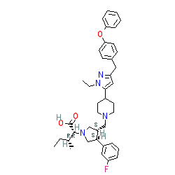 | SMILES | CC[C@@H](C)[C@H](C(=O)O)N1C[C@H](CN2CCC(c3cc(Cc4ccc(Oc5ccccc5)cc4)nn3CC)CC2)[C@@H](c2cccc(F)c2)C1 |