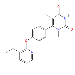| SMILES | CCc1cccnc1Oc1ccc(-c2c(C)c(=O)[nH]c(=O)n2C)c(C)c1 |
