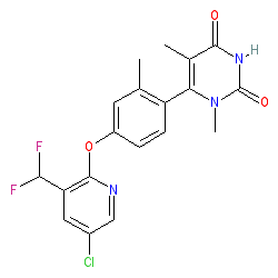 | SMILES | Cc1cc(Oc2ncc(Cl)cc2C(F)F)ccc1-c1c(C)c(=O)[nH]c(=O)n1C |
