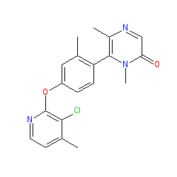 | SMILES | Cc1cc(Oc2nccc(C)c2Cl)ccc1-c1c(C)ncc(=O)n1C |