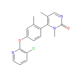 | SMILES | Cc1cc(Oc2ncccc2Cl)ccc1-c1c(C)cnc(=O)n1C |