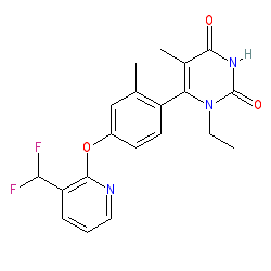 | SMILES | CCn1c(-c2ccc(Oc3ncccc3C(F)F)cc2C)c(C)c(=O)[nH]c1=O |