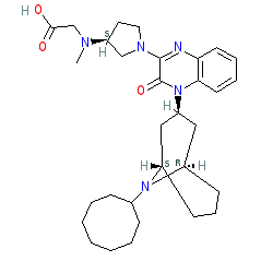 | SMILES | CN(CC(=O)O)[C@H]1CCN(c2nc3ccccc3n([C@@H]3C[C@@H]4CCC[C@H](C3)N4C3CCCCCCC3)c2=O)C1 |