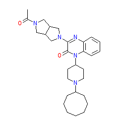 | SMILES | CC(=O)N1CC2CN(c3nc4ccccc4n(C4CCN(C5CCCCCCC5)CC4)c3=O)CC2C1 |