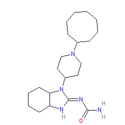 | SMILES | NC(=O)/N=c1\[nH]c2ccccc2n1C1CCN(C2CCCCCCC2)CC1 |