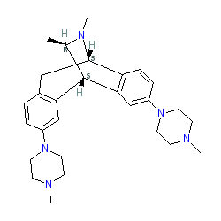 | SMILES | C[C@@H]1[C@H]2c3cc(N4CCN(C)CC4)ccc3C[C@@H](c3ccc(N4CCN(C)CC4)cc32)N1C |