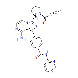 | SMILES | CC#CC(=O)N1CCC[C@H]1c1nc(-c2ccc(C(=O)Nc3ccccn3)cc2)c2c(N)nccn12 |