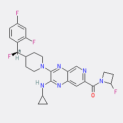 | SMILES | O=C(c1cc2nc(NC3CC3)c(N3CCC([C@@H](F)c4ccc(F)cc4F)CC3)nc2cn1)N1CCC1F |