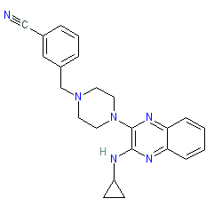 | SMILES | N#Cc1cccc(CN2CCN(c3nc4ccccc4nc3NC3CC3)CC2)c1 |