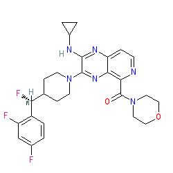| SMILES | O=C(c1nccc2nc(NC3CC3)c(N3CCC([C@@H](F)c4ccc(F)cc4F)CC3)nc12)N1CCOCC1 |