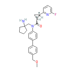 | SMILES | COCc1ccc(-c2ccc(N(CC3(N)CCCC3)C(=O)[C@@H]3C[C@H]3c3cccc(F)n3)cc2)cc1 |