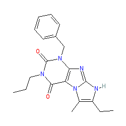 | SMILES | CCCn1c(=O)c2c(nc3[nH]c(CC)c(C)n32)n(Cc2ccccc2)c1=O |