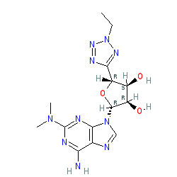 | SMILES | CCn1nnc([C@H]2O[C@@H](n3cnc4c(N)nc(N(C)C)nc43)[C@H](O)[C@@H]2O)n1 |