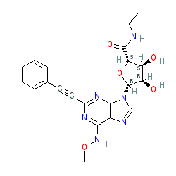 | SMILES | CCNC(=O)[C@H]1O[C@@H](n2cnc3c(NOC)nc(C#Cc4ccccc4)nc32)[C@H](O)[C@@H]1O |