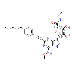 | SMILES | CCCCCc1ccc(C#Cc2nc(NOC)c3ncn([C@@H]4O[C@H](C(=O)NCC)[C@@H](O)[C@H]4O)c3n2)cc1 |