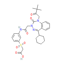 | SMILES | CC(C)(C)C(=O)CN1C(=O)N(CC(=O)Nc2cccc(S(=O)(=O)CC(=O)O)c2)N=C(C2CCCCC2)c2ccccc21 |