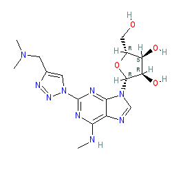 | SMILES | CNc1nc(-n2cc(CN(C)C)nn2)nc2c1ncn2[C@@H]1O[C@H](CO)[C@@H](O)[C@H]1O |
