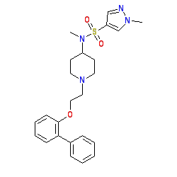 | SMILES | CN(C1CCN(CCOc2ccccc2-c2ccccc2)CC1)S(=O)(=O)c1cnn(C)c1 |