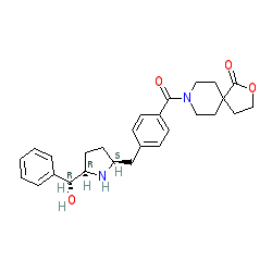 | SMILES | O=C(c1ccc(C[C@@H]2CC[C@H]([C@H](O)c3ccccc3)N2)cc1)N1CCC2(CCOC2=O)CC1 |