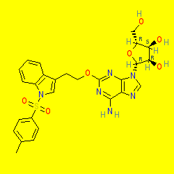 | SMILES | Cc1ccc(S(=O)(=O)n2cc(CCOc3nc(N)c4ncn([C@@H]5O[C@H](CO)[C@@H](O)[C@H]5O)c4n3)c3ccccc32)cc1 |