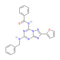 | SMILES | O=C(Nc1nc(NCc2ccccc2)nc2nc(-c3ccco3)nn12)c1ccccc1 |