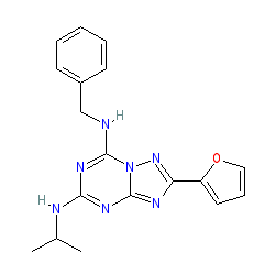 | SMILES | CC(C)Nc1nc(NCc2ccccc2)n2nc(-c3ccco3)nc2n1 |