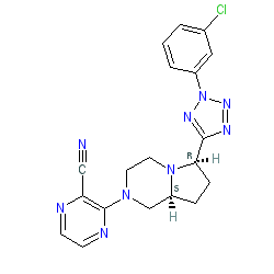 | SMILES | N#Cc1nccnc1N1CCN2[C@@H](CC[C@@H]2c2nnn(-c3cccc(Cl)c3)n2)C1 |